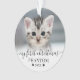 Ornement de photo personnalisé pour le premier Noël de votre chat. Célébrez le tout premier Noël de votre chaton avec cet ornement charmant et fait sur mesure, conçu pour capturer la joie de la première saison des fêtes de votre félin adoré. Le devant présente un emplacement pour une photo de votre chat avec la phrase "Mon premier Noël" en élégante calligraphie, ainsi que le nom de votre chat et l'année de naissance pour une touche personnelle. Au dos, il y a de la place pour une deuxième photo associée à "Joyeux Noël" dans la même écriture délicate, avec le nom et l'année de votre chat affichés plus petits en bas. Des accents de flocons de neige gris clair ajoutent une touche de charme hivernal, tandis qu'un effet ombré blanc doux au bas de chaque photo crée une transition transparente et raffinée. Les couleurs de la police et des flocons de neige peuvent être personnalisées pour correspondre à votre style. Cet ornement souvenir est parfait pour les mamans de chats, les papas de chats ou toute famille aimant les félins qui célèbre la première saison des f