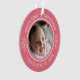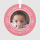Cette décoration de Noël est à double sens. Personnalisez-le avec deux photos. Un à l'avant et un autre à l'arrière. Ce modèle fonctionne le mieux avec les photos au format paysage avec le bébé au centre de la photo. Personnalisez le texte avec le nom et l'année.
