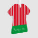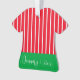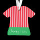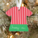 Bandes rouges et blanches mignonnes sur chemise verte avec ornement de date de naissance pour le premier Noël du bébé. Nom d'un côté, date de l'autre.