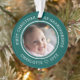 Cette décoration de Noël est à double sens. Personnalisez-le avec deux photos. Un à l'avant et un autre à l'arrière. Ce modèle fonctionne le mieux avec les photos au format paysage avec le bébé au centre de la photo. Personnalisez le texte avec l'année et le nom du bébé.
