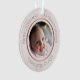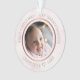 Cet ornement de Noël moderne et personnalisé présente un élégant décor d'or faux rose sur un arrière - plan en marbre. Personnalisez le nom, l'année et la photo. Ce modèle fonctionne le mieux avec les photos au format paysage avec le sujet au centre.