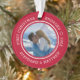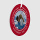 Cette décoration de Noël est à double sens. Personnalisez-le avec deux photos. Un à l'avant et un autre à l'arrière. Ce modèle fonctionne mieux avec les photos au format paysage avec le couple au centre de la photo. Personnalisez le texte avec les noms et l'année.