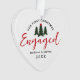 First Christmas Engaged À feuillage persistant Trees Heart Ornament est un cadeau de vacances idéal pour un couple qui se marie. Il est minimaliste et décoré sur un décor en forme de coeur blanc. Le texte est "notre premier Noël engagé" en caractères de caractères de caractères de caractères de caractères de caractères rouges et de lettres noires simples. Les prénoms des couples sont imprimés en coque inférieur et l'année personnalisée. Trois arbres à feuillage persistant se trouvent sur la partie supérieure et un petit coeur rouge se trouve sur l'arbre central. Le design est de part et d'autre. Disponible sous différentes formes. Cliquez sur l'option Personnaliser le modèle et entrez les noms et l'année.