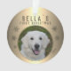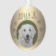 Premier ornement de Noël Gold Snowflake Puppy Photo Ornament. Snowflakes et dégradé arrière - plan métallique doré. Personnalisez l'ornement avec la photo, le nom et l'année de naissance de votre chien - insérez votre photo de chiot préférée. Vous pouvez utiliser cet ornement personnalisé pour n'importe quel animal de compagnie. Un grand souvenir de vacances pour un propriétaire de chien.