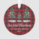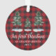 Script de calligraphie moderne, Aquarelle Pine Arbres, Vert Notre premier Noël en tant que Grand-Parents Ornement - Rouge Buffalo Plaid