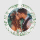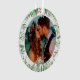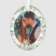 Theme Parties' Just Married ornament est un beau design de garde mariage, avec votre photo mariage préférée. Notre ornement mariage est orné d'élégantes typographies d'écriture dorée festive avec des accents de vacances et est encadré de verdure aquarelle et de petits fruits rouges. #Mariage #Keespake #FirstChristmas