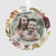 Célébrez votre premier Noël en couple marié avec cet élégant ornement de fleurs boho en fer à repasser photo. La couronne a des fleurs bordeaux, roses et oranges chaudes avec des accents de feuillage vert. Facile à customiser avec vos noms et votre année sur le devant et votre photo sur le dos.