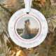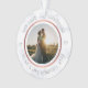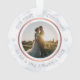 Cet ornement de Noël personnalisé présente un design d'or faux rose moderne sur un arrière - plan en faux marbre. Personnalisez le nom, l'année et la photo mariage. C'est à double face. Ce modèle fonctionne le mieux avec une photo au format paysage avec le couple au centre.