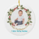 Célébrez la joie de la première saison de vacances de votre petit avec cet élégant ornement photo Baby’s First Christmas 2025. Conçu comme un souvenir intemporel, cet ornement en céramique ronde dispose d'un espace central pour votre photo de bébé préférée, entouré de détails festifs. L’option de personnalisation vous permet d’ajouter le nom et la photo de votre enfant, ce qui en fait la meilleure façon de préserver ce jalon pour les années à venir. Que ce soit pour votre propre sapin de Noël ou comme cadeau de coeur pour les nouveaux parents, grands-parents ou parrains, cet ornement ajoute une touche d’amour et de magie à chaque célébration. Un beau souvenir mémorable pour Noël 2025.