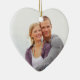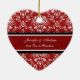 Ęr ornement de photo de Noël de couples personnalisable avec votre propres photo, noms et date en rouge élégant, motif floral classique noir et blanc de damassé. Une manière élégante de décorer votre arbre ou maison de Noël pour les vacances. La manière parfaite de se rappeler votre premier Noël ensemble comme couple.