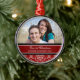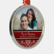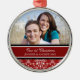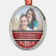 Ęr ornement de photo de Noël de couples personnalisable avec votre propres photo, noms et date en rouge élégant, motif floral classique noir et blanc de damassé. Une manière élégante de décorer votre arbre ou maison de Noël pour les vacances. La manière parfaite de se rappeler votre premier Noël ensemble comme couple.