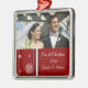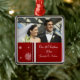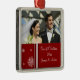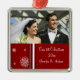 Ęr ornement de photo de Noël de couples personnalisable avec votre propres photo, noms et date en rouge élégant et le blanc avec le motif de fête de flocons de neige. Une manière élégante de décorer votre arbre ou maison de Noël pour les vacances. La manière parfaite de se rappeler votre premier Noël ensemble comme couple.