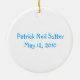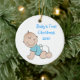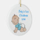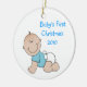 Ornement rond d'arbre de Noël, avec des graphiques de bande dessinée d'un bébé. Le texte bleu sur l'avant lit le premier Noël 2010 du bébé. Personnalisez le texte sur le dos de l'ornement avec le nom et la date de naissance de votre bébé. Le premier ornement de Noël du grand bébé, et fait un cadeau doux aussi.