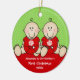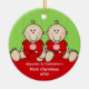 Notre premier ornement de Noël comporte une paire adorable de jumeaux de bébé réglés sur rouge et verte arrière - plan pointillé par polka ! Personnalisez avec votre information de bébé et date et vous sont tous placent pour aller ! Cadeau daté merveilleux de souvenir pour ęr Noël de votre bébé.