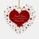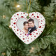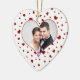 Souvenir d'ornement du jour de valentine de couples de photo ęr avec le motif rouge et blanc classique de coeurs, personnalisable avec vos noms et photo. Le souvenir parfait de votre première Saint-Valentin ensemble comme couple.