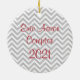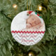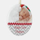 Premier ornement photo de Noël du bébé doux fait en motif chevron gris et blanc. La moitié supérieure du devant est prête pour la photo de votre bébé et le texte en écriture rouge, à l'avant et à l'arrière, est prêt à être personnalisé. Belle façon de commémorer le premier Noël de votre enfant, et grande idée cadeau pour les grands parents.
