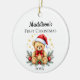 Célébrez une étape précieuse avec cet adorable ornement de Noël du premier bébé. Doté d'un joli ours en peluche dans un chapeau de Père Noël, personnalisé avec le nom de votre bébé, "Premier Noël", et l'année sur le front. Le dos est spécialement conçu pour que vous puissiez ajouter une photo chère, ce qui en fait un souvenir unique et personnalisable. Parfait pour les nouveaux parents, grands-parents, ou comme un cadeau de baby shower réfléchi. Cette décoration personnalisée est une merveilleuse façon de commémorer cette première saison des fêtes et sera chère pour les années à venir.