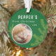 Premier Noël Pine Kitten Cat 2 Photo Keepsaké Ornement. Très beau premier chaton de Noël ornement photo avec branches d'arbres de Noël. Personnalisez l'ornement avec la photo de votre chat à l'avant et à l'arrière de l'ornement, nom et année - insérez votre photo de chaton préférée. Vous pouvez utiliser cet ornement personnalisé pour n'importe quel animal de compagnie. Un joli et mignon gardien de vacances pour un propriétaire de chat.