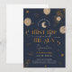 Conçu pour notre première visite autour de la collection Sun Birthday, cette carte d'invitation personnalisable présente étoiles, planètes, ciel nocturne, éclats d'or. Fait principalement dans les couleurs bleu foncé et or avec des polices décoratives. Éléments correspondants disponibles.