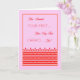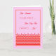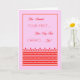 Première carte de survie chimio dans un joli rose avec écriture rouge et une impression rayée en rouge au bas de la conception sous l'écriture. Il y a aussi une fine bordure rouge et jaune autour de l'écriture et du design.