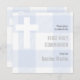 Si vous aimez le rustique, vous aimerez cette première invitation à célébrer la communion pour la journée spéciale de votre fils. Cette décoration est composée d'un arrière - plan de plaid de buffle bleu et blanc. Sur la gauche est une croix blanche et sur la droite dans une typographie grise moderne est vos détails de célébration qui continuent sur le dos de cette carte carré. Conçu par un artiste de renommée mondiale ©Tim Coffey.