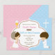 Jolie invitation partagée pour jumeaux / frères et soeurs pour baptême / première communion sainte.