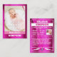 Pensez à l'extérieur de la boîte de la batte avec cette carte de baseball fantaisiste pour votre fille. Tout comme une vraie carte de baseball, il y a une zone pour insérer la date de naissance de votre fille, son poids en livres et aussi en onces, et au lieu de sa taille, vous entrez sa longueur. Il y a aussi un endroit pour insérer l'année de l'admissibilité de votre fille à l'écriture. Au lieu d'une bio joueur, il y a une zone de texte pour faire votre faire-part de naissance avec un maximum de huit lignes de texte. La bordure avant de la carte et aussi son arrière - plan à l'arrière est un maillot de sport en maille bleue. En plus de la photo de votre bébé à l'avant, il y en a aussi une à l'arrière que vous devez remplacer par la vôtre.