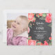 Faire-part de 1er anniversaire avec photo personnalisée. Fleurs rouges botaniques aquarelle. Faire-part d'anniversaire floral rose et pivoines pour fille. Fleur florale aquarelle. Fleurs élégantes de rose et de pivoine roses. Anniversaire d'enfant. Fond tableau noir. Noir et blanc. 13e 15e 16e 18e 20e 21e 30e 40e 50e 60e 70e 80e 90e 100e, tous âges. Pour une personnalisation plus poussée, veuillez cliquer sur le bouton "Personnaliser" et utiliser notre outil de conception pour modifier ce modèle.