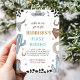 Célébrez la journée spéciale de votre petit cowboy avec cette charmante invitation pour son premier rodéo ! Parfaite pour une fête sur le thème du rodéo pour un premier anniversaire, cette invitation présente des dessins amusants inspirés de l'Ouest et des éléments de cowboy ludiques qui donnent le ton pour une célébration mémorable. Facile à personnaliser avec le nom de votre enfant, la date et les détails de la fête, cette invitation est un must pour les parents qui prévoient une fête d'anniversaire sur le thème des cowboys. Sellez vos chevaux et préparez-vous pour une journée pleine de plaisir, d'amis et d'excitation de rodéo !