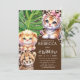 Ces invitations sauvages d'un anniversaire célèbrent le premier anniversaire de votre fille avec un thème de safari jungle. Des animaux mignons kawaii rendent cette invitation adorable !
