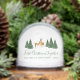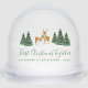 Un design de Noël avec un thème d'animaux de la forêt. Il y a un couple de cerfs, un cerf et une biche, sur fond de neige blanche, entre des groupes de pins verts avec de la neige sur les côtés. Le texte "Premier Noël ensemble" est en écriture manuscrite verte, avec le nom et l'année en lettres vertes plus petites en dessous.