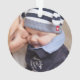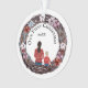Célébrez votre premier Noël avec cette belle illustration d'une femme brune aux cheveux vêtue de pantalon en denim et d'un pull-over tricoté rouge et blanc assis avec son dos vers vous. Elle est assise à côté d'un bébé caucasien blanc aux cheveux blonds qui porte également un bonnet et est encadré par un cadre en bois brindille qui a délicatement des baies rouges, des boules de coton, des cônes de pin et des feuilles de sapin sur elle et les mots, notre premier Noël suivi par l'année. Le dos a un modèle pour votre photo personnalisée.