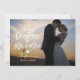 Carte de vœux moderne avec les mots "notre premier Noël en tant que M. et Mme" dans un script manuscrit moderne avec votre photo en arrière-plan. Le verso de la carte comporte de faux flocons de neige pailletés argentés.