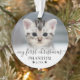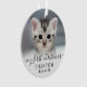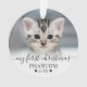 Ornement photo personnalisé de mon premier Noël pour chat. Célébrez le tout premier Noël de votre chaton avec cet ornement charmant et fait sur mesure, conçu pour capturer la joie de la première saison des fêtes de votre félin adoré. Le devant présente un espace pour une photo de votre chaton avec la phrase "Mon premier Noël" en calligraphie élégante, ainsi que le nom de votre chat et l'année de naissance pour une touche personnelle. Au dos, il y a de la place pour une deuxième photo associée à "Joyeux Noël" dans la même écriture délicate, avec le nom et l'année de votre chat affichés plus petits en bas. Des accents de flocons de neige gris clair ajoutent une touche de charme hivernal, tandis qu'un effet ombré blanc doux au bas de chaque photo crée une transition sans couture et raffinée. Les couleurs de la police et des flocons de neige peuvent être personnalisées pour correspondre à votre style. Cet ornement souvenir est parfait pour les mamans de chats, les papas de chats ou toute famille aimant les félins qui célèbre la première saison des f