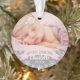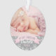 La bannière "My First Christmas" et le design de décoration de la photo de la frontière avec flocon de neige peuvent être personnalisés avec le nom de la petite fille et l'année de naissance. Inclut une deuxième photo à l'arrière. Couleurs claires rose, gris et blanc.