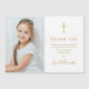 Doté d'un nom de signature de script doré. Personnalisez avec votre photo et la première communion sainte spéciale message de remerciement en lettres d'or chic sur ce design élégant. Conçu par Thisisnotme©