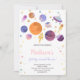Fêtez la première orbite de votre petit avec cette adorable invitation d’anniversaire "Premier voyage autour du soleil"! Doté de planètes, d'étoiles et d'un design d'espace gai, cette carte modifiable est parfaite pour les 1er anniversaires avec une touche cosmique. Personnalisez tous les détails de la fête en utilisant facilement les outils de design de Zazzle. Idéal pour les familles qui aiment l'espace et les célébrations à thème galaxie.