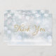 Carte de remerciement premiers flocons, avec des flocons de neige délicats tombant sur votre message de remerciement, dans un texte doré élégant sur un fond hivernal magique, Vous pouvez personnaliser avec votre propre message de remerciement au verso, un moyen parfait de dire merci ! Conçu par Thisisnotme©