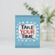 "Take Your Time" est une mignonne citation inspirante ou motivante avec une forme d'accent blanc entourée de points blancs texturés.