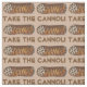 Fabric présente une illustration originale d'un délicieux cannoli, avec TAKE THE CANNOLI écrit dans une police marron amusante. Imprimé sur un arrière - plan bronzé.