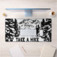 Illustration monochrome avec vue montagne et dessin en bois d'hiver enneigé en style boisé