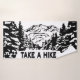 Illustration monochrome avec vue montagne et dessin en bois d'hiver enneigé en style boisé