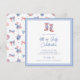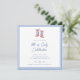Square 4th of July party invitation featuring festive watercolor illustrations like cowboy boots, bows and balloon animals paired with elegant fonts in which your personalized information is written in. All of this is framed by a preppy frame in two colors; blue and white. Check out our store for more items from this collection.