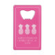 This cute personalized bottle opener features classic white pineapples on a background of bright girly pink. Personalize with your choice of name and special text the front and back. Great for personalized party favors and gift tags.