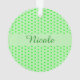 Ce magnifique ornement acrylique présente une image graphique d'un pod vert de pois contenant 3 pois verts. Le plus grand pois a un petit visage mignon avec les yeux et une bouche. De l'autre côté du pod en vert foncé, il est dit "Prêt à pop". Le design est idéal pour un cadeau de Noël pour une Mère à être.