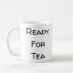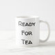 Prêt Pour Le Café Modèle À Thé Mug. Les mots "Prêt pour le Modèle de thé" sont écrits sur du texte noir à l'avant et à l'arrière de cette tasse de café. Ajoutez les mots pour votre boisson préférée. Bon appétit !