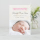 Customisez cette carte de faire-part de naissance bébé moderne et chic avec la photo et les détails de votre bébé doux. La carte présente un motif délicat, pastel, floral.