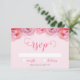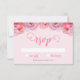 Vous envisagez un mariage à thème fleuri rose ? Cette carte RSVP présente de beaux roses d'aquarelle rose. Jetez un coup d'oeil à la correspondance enregistrer les dates et les invitations de mariage de la collection Rose Pink Watercolor. Customisez ceci en remplaçant facilement le texte de l'espace réservé pour ajouter votre texte. Pour plus d'options comme changer la police et sa taille, cliquez sur le bouton "Customiser". *Veuillez noter que le filigrane Zazzle qui apparaît dans l'aperçu du zoom n'apparaîtra pas sur le produit imprimé final © Rosewood et Citrus