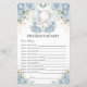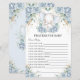 Prières de baby-shower à l'éléphant floral bleu bébé pour l'activité de feuille de baby-shower. Tout le texte est modifiable, vous permettant de le personnaliser pour l'adapter à votre occasion. Plus de jeux disponibles en magasin ! (c) Somerset Fine Paperie.