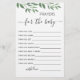 Achetez cette carte modifiable et profitez de Prières pour bébé de haute qualité pour votre événement! Il s'agit d'un modèle de carte, Vous pouvez personnaliser la carte, modifier le texte comme vous le souhaitez! Activités baby showers ! Genre Neutral Jeu de devis. Design plante verdoyant.
